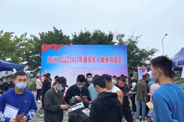 四川新闻网消息 为促进退役军人就近就地就业,积极推动和引导退役军人融入新环境,10月19日上午,内江高新区社会事务局、内江市东兴区退役军人事务局联合在内江职业技术学院举办2021年退役军人就业双选会。