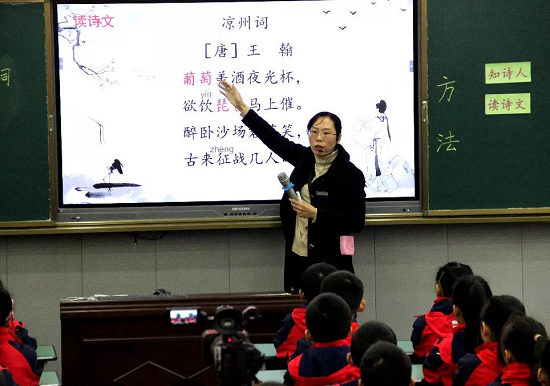 喻兰老师执教古诗《凉州词》结构明晰、深入浅出。孩子们感受到了将士们视死如归的英雄气概。