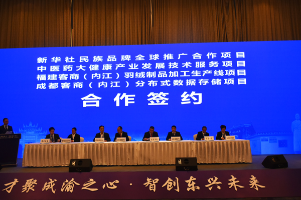 在本次内江人才活动周中,东兴区成功签约项目11个,投资总额29.5亿元,签约项目涵盖先进材料、数字经济、中医药大健康产业等领域。在“2021年四川内江人才活动周•东兴行”开幕式当天,新华社民族品牌全球推广合作项目、中医药大健康产业发展技术服务项目、福建客商(内江)羽绒制品加工生产线项目、成都客商(内江)分布式数据存储项目现场签约。