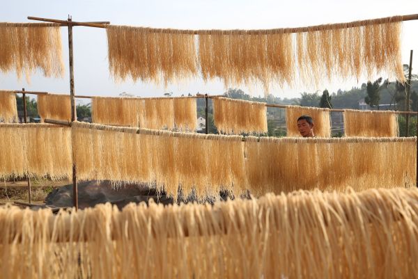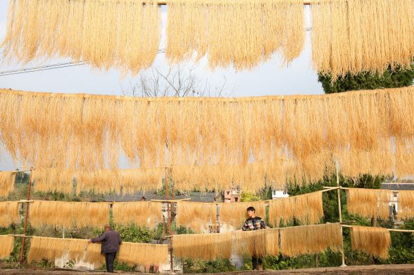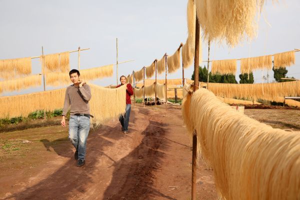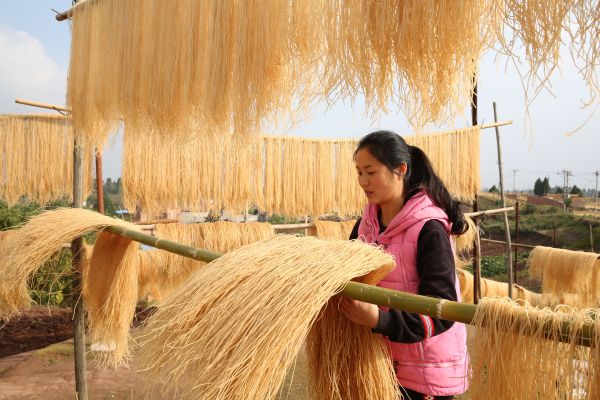 眼下正值冬闲时节,在四川省内江市东兴区郭北镇黄泥村,当地村民正抓住晴好天气加工和晾晒红薯粉条,变“冬闲”为“冬忙”,掀起冬季增收热潮。近年来,四川省内江市东兴区郭北镇黄泥村利用冬闲时期发展手工粉条加工业,全村年生产手工粉条60余万公斤,并通过订单销售的方式销往重庆、成都等地,带动当地群众持续增收,成为当地小有名气的“粉条村”。(内江市东兴区委宣传部供稿 兰自涛 摄)