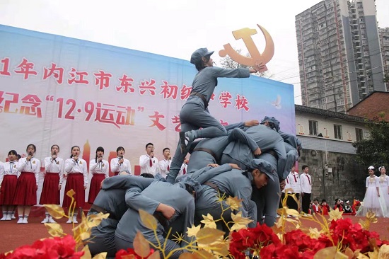四川新闻网消息(陈颖)近日,内江市东兴初级中学校举行了以“传承红色基因,赓续红色血脉”为主题的纪念“12.9运动”文艺汇演,全校师生齐聚运动场,共同怀念那个跌宕起伏的日子。
