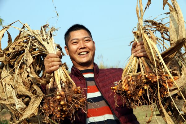 现年34岁的陈泽龙是内江市东兴区杨家镇石盘村的青年农民。受“回引工程”影响,已经在城市站稳脚跟的他毅然放弃优越的生活条件,回到偏远的家乡投资兴业。2018年以来,在创业贷款等相关创业政策和当地政府的扶持下,陈泽龙流转土地160余亩,在家乡石盘村创办中药材创业园,种植市场潜力好、经济价值高的中药材姜黄、明党参,大力发展中药材产业,并通过“专合社+基地+农户”的运作模式,引导和带动20多户当地农户加入中药材产业阵营,带领乡亲们共同致富。到目前,陈泽龙的中药材种植基地已进入丰收季,其中140余亩姜黄预计年可创收40余万元,为当地群众创劳务收入近20万元。