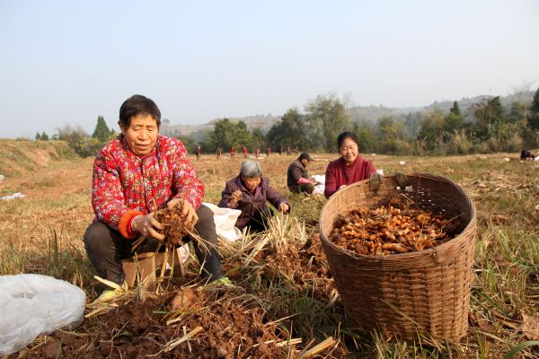 四川新闻网消息 12月20日,在内江市东兴区杨家镇石盘村,青年农民陈泽龙和当地药农趁着晴好天气抢收中药材姜黄,丰收的笑颜写满了药农的脸上。