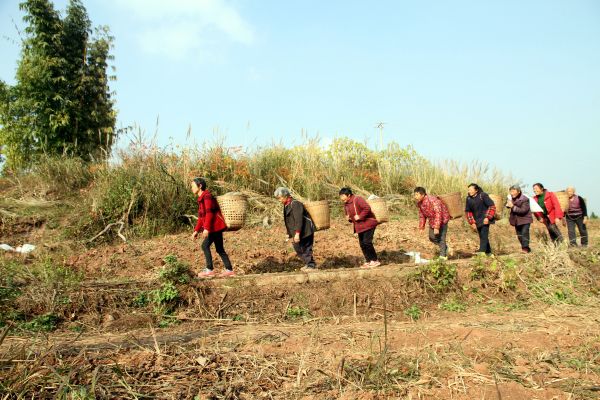 背着丰收的姜黄,奔走在田间作业道上