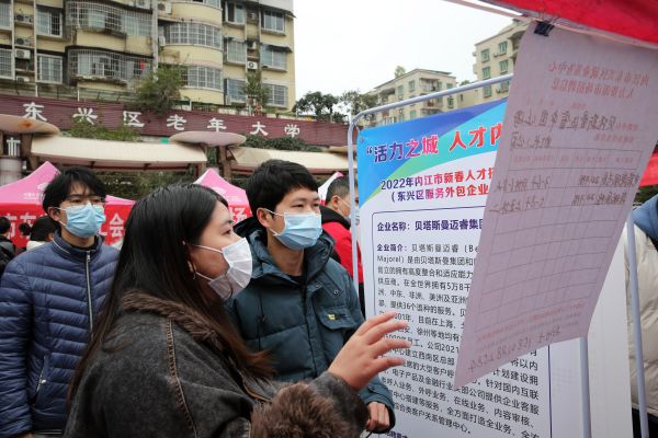 当日是正月初八,四川省内江市东兴区举行春节后首场人才招聘会,组织本地60余家企业提供用工岗位2600余个,涉及电商、互联网、餐饮、房地产等行业领域,力助广大返乡人员实现在家门口就业。(图文由内江市东兴区委宣传部提供 作者:兰自涛)