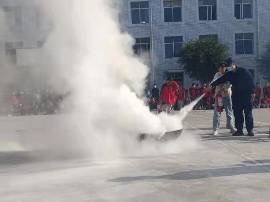 活动中,曹警官首先对灭火器的检查、正确使用方法、应急逃生技巧等消防安全相关知识进行了讲解,在警官的协助下,部分师生参与到了灭火器实际灭火及全校火灾应急逃生演练。