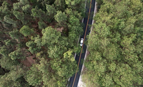 3月12日,在内江市东兴区田家镇正子村,汽车行驶在乡村公路上。(无人机照片)