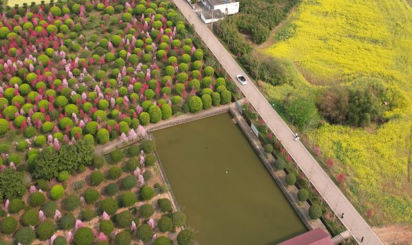 3月12日,在内江市东兴区郭北镇长坝村,汽车行驶在乡村公路上。(无人机照片)
