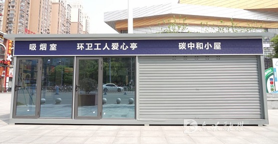 四川新闻网消息 近日,内江市很多市民朋友兴奋地注意到,在东兴区城区内的街头,陆陆续续多了几座灰色的小房子,上面写着“碳中和小屋”五个大字。小屋占地面积不大,约20平方米左右,共分为垃圾分类投放站、公共吸烟室和环卫工人爱心亭三大功能区,在方便广大市民及环卫工人垃圾分类投放的同时,也为大家提供了一个歇脚休息、遮风避雨的爱心场所。