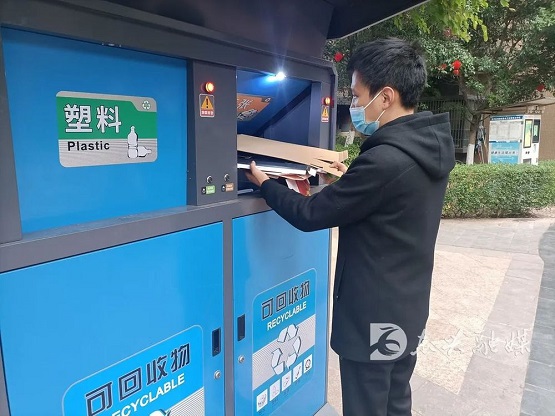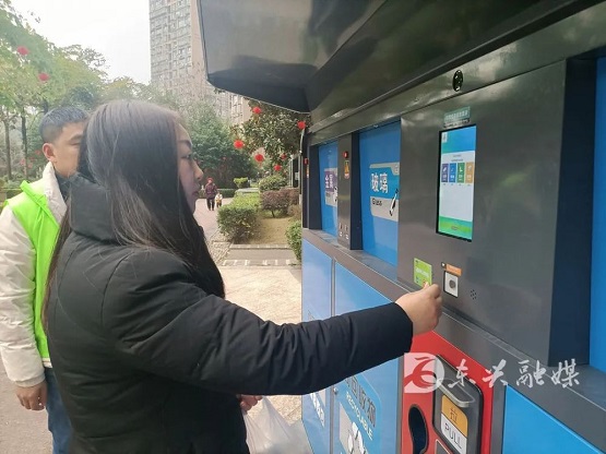 “现在太方便了,我们只需要将垃圾分好类,都不用出小区,就会有专门的人来回收垃圾。”近日,家住东兴区翡翠国际社区的居民张女士把纸箱子、塑料瓶、易拉罐等物品分类装好后,在小区门口,等待“甜城码上收”工作人员来称重回收。