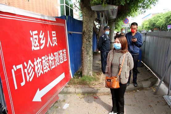 四川新闻网消息 4月6日,在内江市东兴区椑木中心卫生院,医护人员有序为当地群众进行核酸采样。