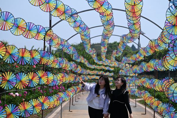 四川新闻网消息 2022年4月8日,游客在四川省内江市东兴区田家镇正子村“长江田园”里游园赏景。