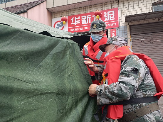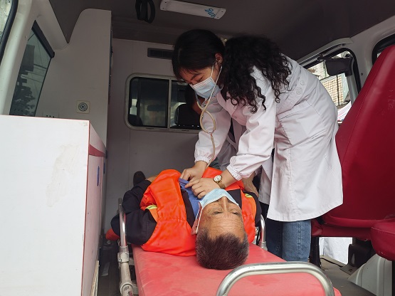 在现场模拟抢险救援中,预警转移组一边挨家挨户告知群众险情,一边组织群众安全有序撤离至临时救灾安置点;抢险救援组以最快的速度进行救援,对受伤群众进行转移;医务救护组快速设立了医疗救护措施,做好医疗救护的充分准备,及时对受伤群众进行救护;后勤保障组迅速搭建临时救灾安置点,准备充足的物资,为转移群众提供水和食物。各救援组有序开展工作,救援处置有条不紊。