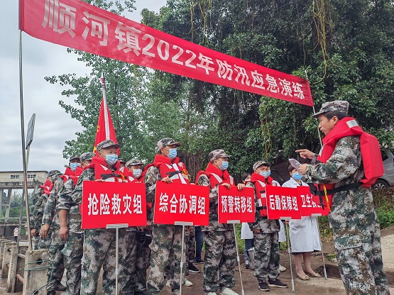 演练以模拟“突降暴雨、洪峰过境”为背景,在接到险情报告后,顺河镇立即启动防汛应急抢险预案,成立现场应急抢险指挥部,组建预警转移组、抢险救灾组、卫生救护组、综合协调组、后勤保障组等救援组。伴随着一阵阵警报声,各救援组在短时间内全部集结完毕,快速奔赴演练事发地点展开应急救援工作。