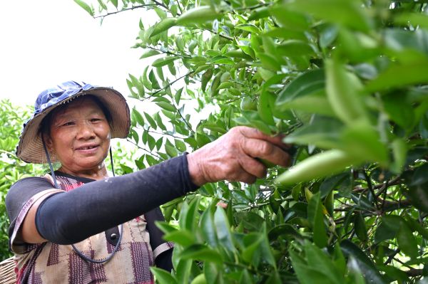 ▲7月28日,在内江市东兴区石子镇七星村枳壳基地,当地村民正在实时采收。