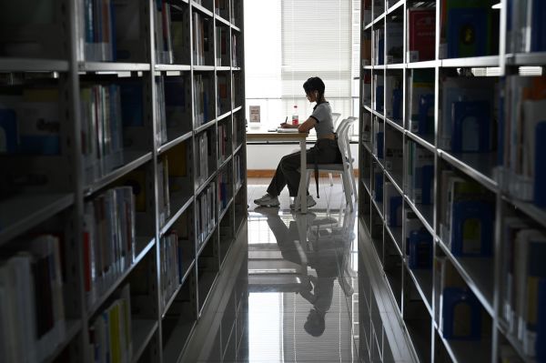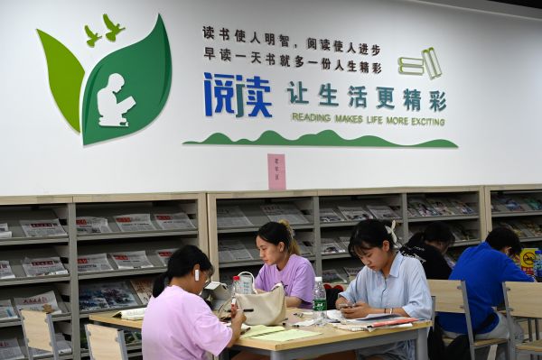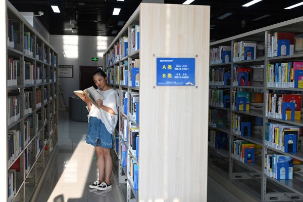 近段时间以来,四川省内江市东兴区连续发布高温红色预警,清凉舒适的图书馆成了市民避暑、学习的好去处。当地图书馆为此将开放时间延迟到晚上9点,吸引了不少市民前往阅读学习、避暑。(供稿:内江市东兴区委宣传部 兰自涛 摄)