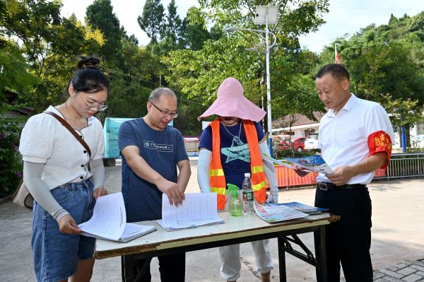 四川新闻网消息 8月23日,在内江市东兴区高梁镇杨岭村,镇、村干部挨家逐户开展入户排查,落实森林防火及防汛抗旱责任,筑牢安全防线。