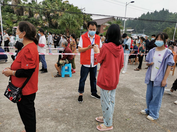 四川新闻网消息(程杨莹 李永琴)9月11月,内江市东兴区杨家镇组织开展本轮疫情第三轮核酸检测。“妈妈,你看叔叔的脚怎么这样?”东兴区杨家镇金银嘴村全民核酸检测点的队伍中,一个小男孩稚趣问到。没等孩子母亲开口,卷起半截裤脚的杨家镇驻村干部何俊杰不经笑道:“叔叔学哪吒踩风火轮没踩稳,烫的水泡挤破了。”“那什么时候能好呢?”“等咱们内江疫情好了,叔叔的脚也好了。”