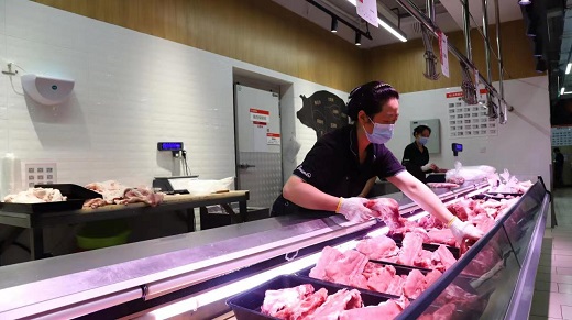 12日下午15时,记者走访保供企业步步高超市、永辉超市,超市工作人员正在对物资进行分装打包,配送人员有序排队,等待拿到物资出发配送。超市负责人表示,目前猪肉、蔬菜、大米、粮油等主副食品供应充足,将全力保障物资供应。
