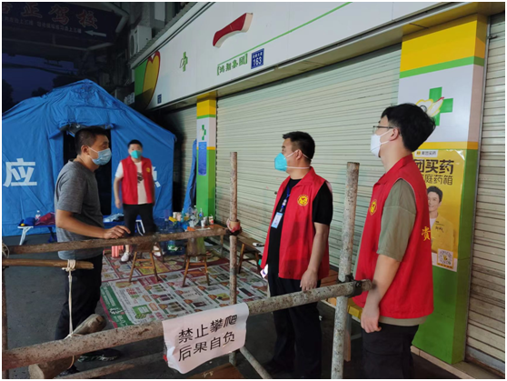 在武陵社区君子薇卡口,干警身穿红马甲,查验过往人员工作证件和过往车辆临时通行证、协助社区做好全员核酸、劝散在聚集、围观群众……这些工作,每天不间断重复。但干警们没有放松,时刻紧绷,确保防疫政策严格落实。