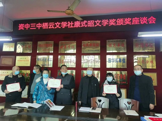 四川新闻网消息(陈颖)12月6日上午,资中三中栖云文学社召开资中县第十二届康式昭文学奖颁奖座谈会。学校党委班子成员出席座谈会,学校团委负责社团工作同志、栖云文学社编委会全体成员、康式昭文学奖获奖师生参加了会议。