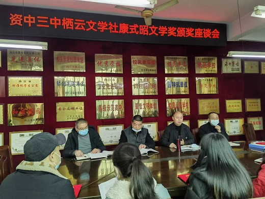 座谈会上,栖云文学社社长王章彬对栖云文学社自成立以来的各方面工作作回顾,并宣布资中三中今年获得资中县第十二届康式昭文学奖师生和指导教师名单。