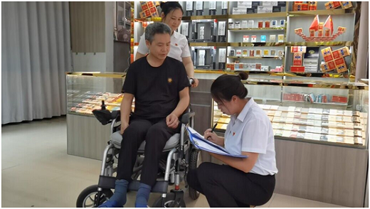 2008年,转业到资中县局(分公司)的熊成彬负责罗泉镇管区,在市场走访中看到了坐着轮椅立着小摊儿卖东西的王敬新,听到零售户谈起王敬新的遭遇,熊成彬便主动找到王敬新,对像王敬新家这种因病导致劳动能力弱的贫困户,熊成彬建议他们办个烟草零售许可证。