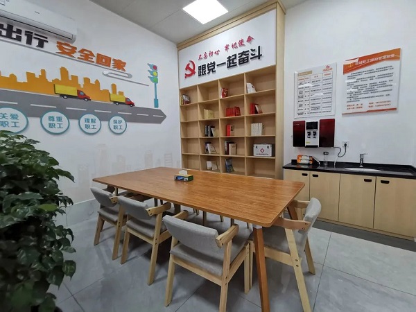 资中县“司机之家”位于资中县凤凰工业园区新发地国际农产品交易中心项目区,占地面积约50平方米,阵地重点突出“党务+服务”功能,布局有休闲区、阅读区等功能区,配置了按摩椅、空调、直饮机等设施设备,免费为司机朋友提供政策咨询、休息休闲、学习交流等“一站式”服务,是一个货车司机在路上的“歇脚地”、“暖心窝”、“共享家”。