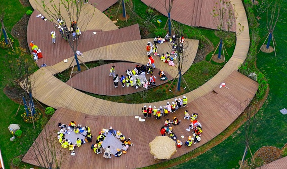 3月26日,游客在内江市东兴区范长江故里旅游度假区打卡游玩。