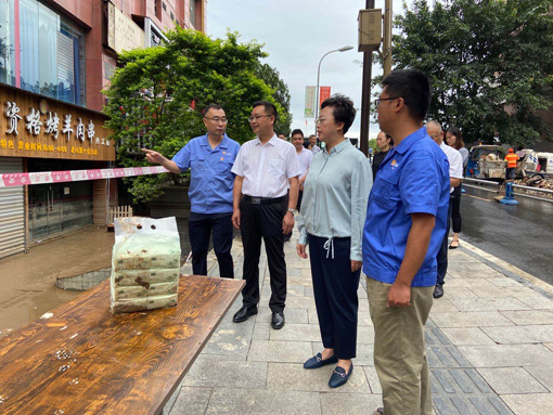 在汉安首座燃气抢修点现场,郑莉详细了解内江市汛期供气基本情况。并与大家亲切交流,询问城区燃气气压变化、供应情况、设施损毁情况、复供气时间、值班值守等情况。在现场指挥抢险的内江华润燃气总经理舒忐介绍了洪峰过境期间,该公司全力保供,最大化减少洪峰对燃气设施及居民用气的影响。汛前,该公司还制定了防汛应急预案,进行防汛重点部位专项安全隐患排查,开展了应急演练,并加强汛期值班值守。