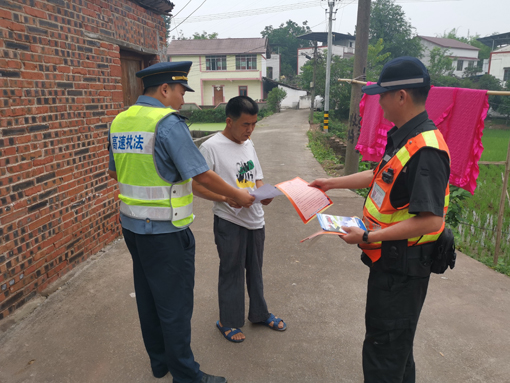 联勤工作人员来到内江市椑木镇团结村,与村社干部进行交谈,了解村落安全生产情况和村民出行交通选择。为增强村民交通安全意识,工作人员通过实地走访、发放传单、接受咨询等形式向村民宣讲道路安全法规以及安全行车知识,引导沿线居民安全文明出行,共筑和谐交通环境。
