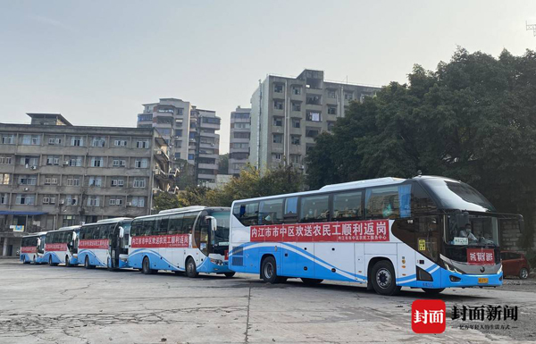 四川新闻网消息 3月16日9时许,内江晏家湾汽车站,5辆由内江市市中区开往长治、太原、吕梁、大同的返岗专车,载着192名农民工,缓缓驶出汽车站,预计将于3月17日下午抵达。