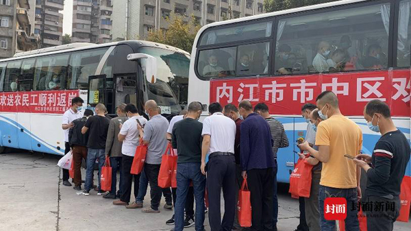 原标题:带上家乡特产和大礼包 内江近200名农民工乘坐免费专车返岗