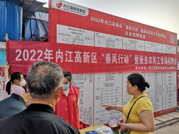 四川新闻网消息 为扎实做好稳就业、保就业工作,推进农村富余劳动力合理转移和统筹城乡就业工作,更好的服务于春节前后农村务工人员就业创业需求和用工单位用工需求,3月18日,内江高新区就业和社会保障中心在高桥街道农贸市场举办“春风行动”暨服务农民工专场招聘会,为社区居民和用人单位架起“零距离”对接平台,扩大区内招商引资企业知名度,将招聘岗位送到社区居民身边。