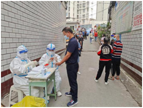 陈语菡同志在圣江社区西园小区核酸采集点穿戴防护服协助医护人员进行信息登记 |
