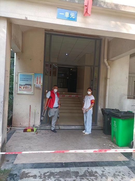 英伦世家小区居民开展全员核酸检测,王铁腱有时负责维持核酸采样秩序,最长的一天,拄杖站立时间超过10小时,一度导致左脚肿胀,但他坚持轻伤不下火线,只是回家自行处理,第二天仍继续坚守岗位。