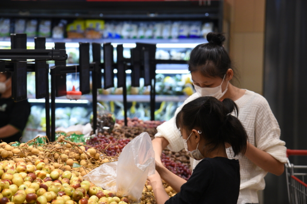 “疫情居家这么久了,家里面也是粮食蔬菜也快吃完了,可以来买菜很高兴。合理的消费,吃多少用多少,没有必要囤着。”居民张先生说。在永辉超市万晟城店内,蔬果区、零食区、米面区等区域,各类生活物资均摆满货架,超市的工作人员都严格佩戴口罩,市民也都自觉全程戴口罩采购。严格落实疫情防控相关措施,执行“一扫三查”防疫政策。