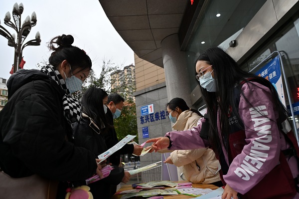四川新闻网消息 12月1日,四川省内江市东兴区疾病预防控制中心,流动防“艾”宣传小分队工作人员对过往行人进行防“艾”宣传。