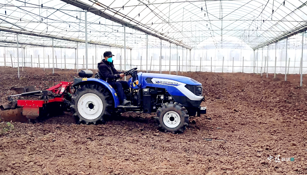 近日,在位于朝阳镇六公丘村的金穗禾家庭农场里,机器设备在大棚里来回穿梭,工人们正在整理土地,准备为明年西红柿种植打下基础。