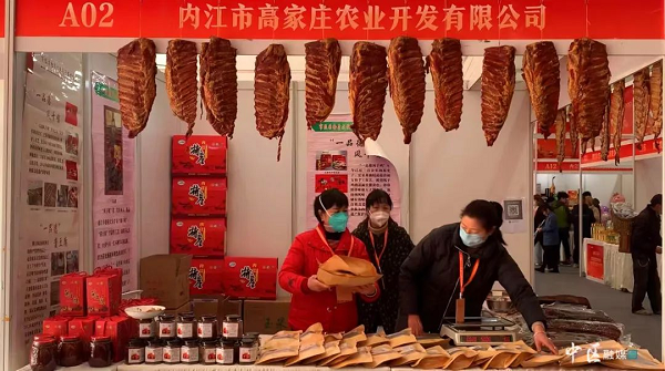 活动现场人山人海、热闹非凡,各种商品琳琅满目,市中区的参展企业均拿出了当家产品在主会场“争奇斗艳”。“一甜一咸一鲜”“一黑一白”, 市中区展出的产品涵盖了群众日常生活的各个范围。“一甜”,包括非遗古法红糖、甘蔗酒等甜味食品,它们是“甜城”的代表性食品。“一咸”,包括盐帮人家、“一品德”风干鸡、“一品德”酱豆腐、巴马香猪香肠,“一鲜”包括蜀丰鸡蛋、立利核桃油等副食产品,它们是市中区近年来大力发展食品产业,不断完善食品产业链条的最好证明。“一黑”即内江黑猪,“一白”即永安白乌鱼,这“一黑一白”是中区在传承传统养殖业的基础上培育优良品种的创新能力的体现。