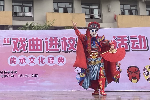 据悉,为传承中华优良传统文化,大力推进传统文化在学校普及和传输,提升学生艺术文化修养素质,丰富学生课余文化生活。今年4月21日至12月底,内江高新区社会事务局邀请内江市川剧团陆续到高桥小学、胜利中心校、高桥中心校开展“戏曲进校园”活动,让更多青少年感受戏曲,从而发现戏曲美、欣赏戏曲美、传承戏曲美。
