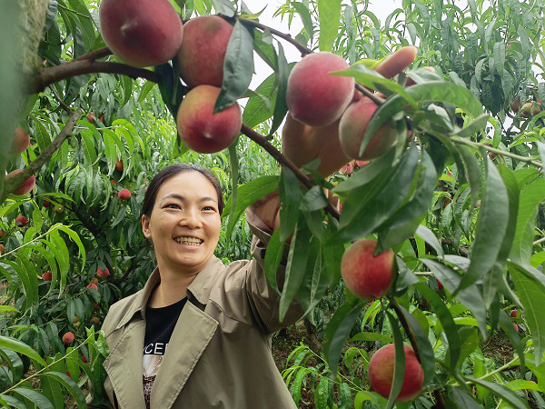 ▲市民在采摘“夏满蜜桃”(周雪梅 摄)