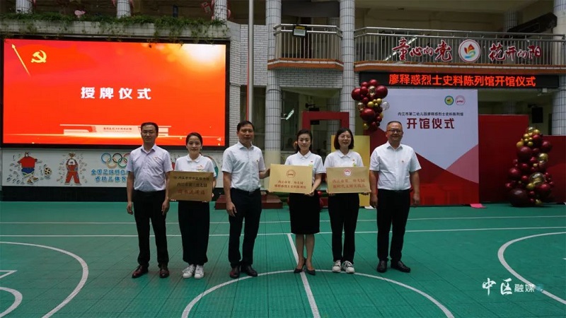 四川新闻网消息 7月3日,“廖释惑烈士史料陈列馆”在内江市第二幼儿园举行开馆仪式。内江市委党史地方志研究室主任申福建、内江市教体局副局长马征、内江市教体局机关党办主任杜腾、市中区委常委、宣传部部长李成刚、廖释惑烈士养女廖常芳、廖释惑烈士长孙廖承、市中区相关单位负责人、街道(社区)代表及其他人员代表参加了开馆仪式。