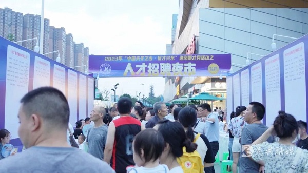 四川新闻网消息 为吸引各类人才留东兴、回东兴、来东兴,在全区上下营造求贤若渴、成就人才的良好氛围。7月7日晚,由区委组织部、区人力资源和社会保障局主办,区就业服务中心承办的“中国天冬之乡 优才兴东”人才招聘夜市火爆来袭,为就业服务增添了满满的“烟火气”。