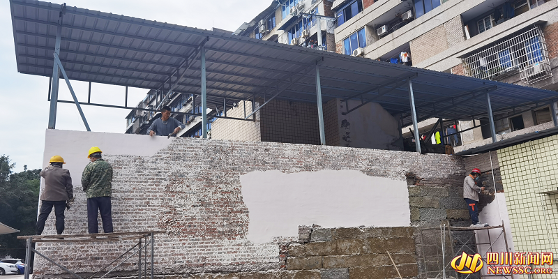 四川新闻网消息(李永琴 文/图)清除“空中飞线”、喷涂外墙真石漆、修建“文化墙”……10月23日,在内江市市中区牌楼街道蟠龙坝社区石油小区内,老旧小区改造正在火热施工,数名工人正在分区域同步进行施工作业,现场一派繁忙景象。