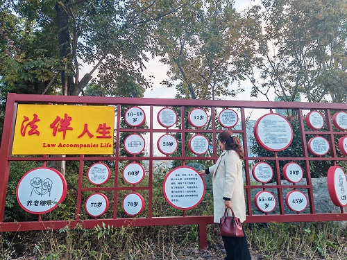 寓法于乐,创新普法形式。设置“法伴人生”“学法达人”“学法能手”等拍照打卡点增添趣味性、互动性,打造出宜赏宜玩宜学法的法治主题宣传“风景带”,让居民切实感受到法律不是“冷冰冰”的,而是就在每个人的身边,在润物无声、潜移默化中增强法治文化的影响力、渗透力和感染力,实现以文化人、以法育人。