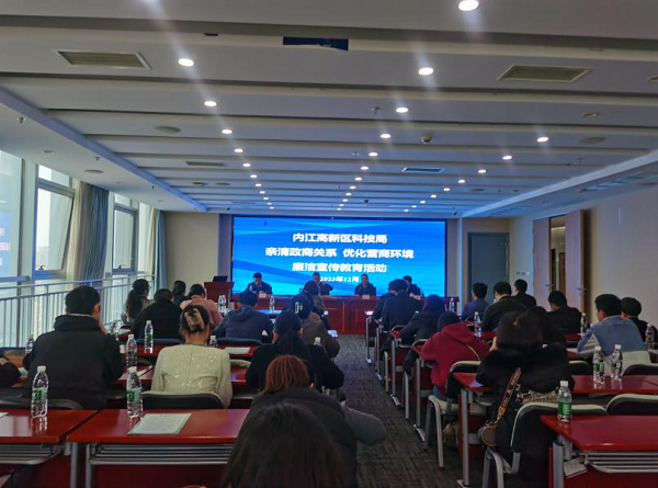 四川新闻网消息 内江高新区科技局坚持把营商环境建设作为推进经济社会高质量发展的突破口,坚持把优化营商环境摆在突出位置,邀请30余家企业在内江汉安孵化器开展“亲清政商关系,优化营商环境”廉洁宣传教育活动。在全区营造“亲而有界、亲而有度,清而有责、清而有为”的“亲”“清”政商关系,让国企敢干、民企敢闯、外企敢投,进一步激活市场活力,推动高质量发展。