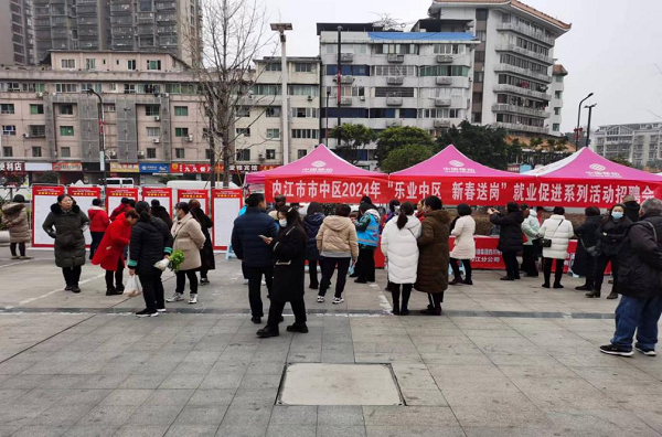 四川新闻网消息 1月9日,在内江市市中区人社局就业服务中心的指导下,市中区2024年“乐业中区 新春送岗”就业促进招聘活动在白马镇、永安镇、全安镇、玉溪街道、城西街道同步举行。