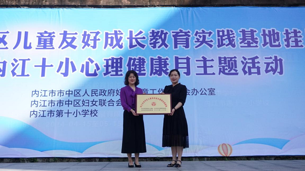 四川新闻网消息(段丹 李永琴)为积极践行儿童友好理念,促进儿童事业健康发展,5月13日,“内江市市中区儿童友好成长教育实践基地挂牌仪式暨内江十小心理健康月主题活动”在内江第十小学校举行。在挂牌仪式上,市中区人民政府妇女儿童工作委员会办公室、市中区妇女联合会、内江十小相关负责人及全体师生共同见证了这一重要时刻。
