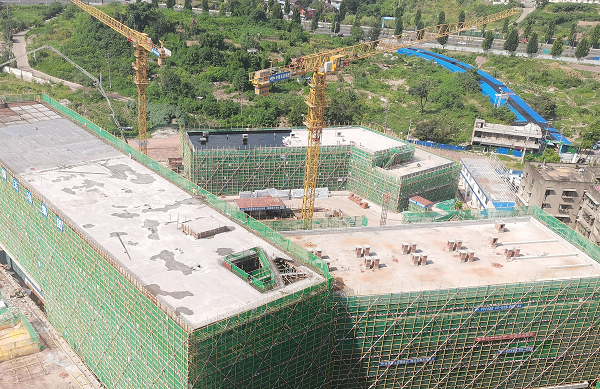 7月31日,内江国家级高新技术产业园区基础配套设施建设项目(一期)——邻里中心项目正火热建设中。项目现场,塔吊设备不停旋转、混凝土运输车来回穿梭,工人们正在进行钢筋绑扎、搭设支模架等施工。